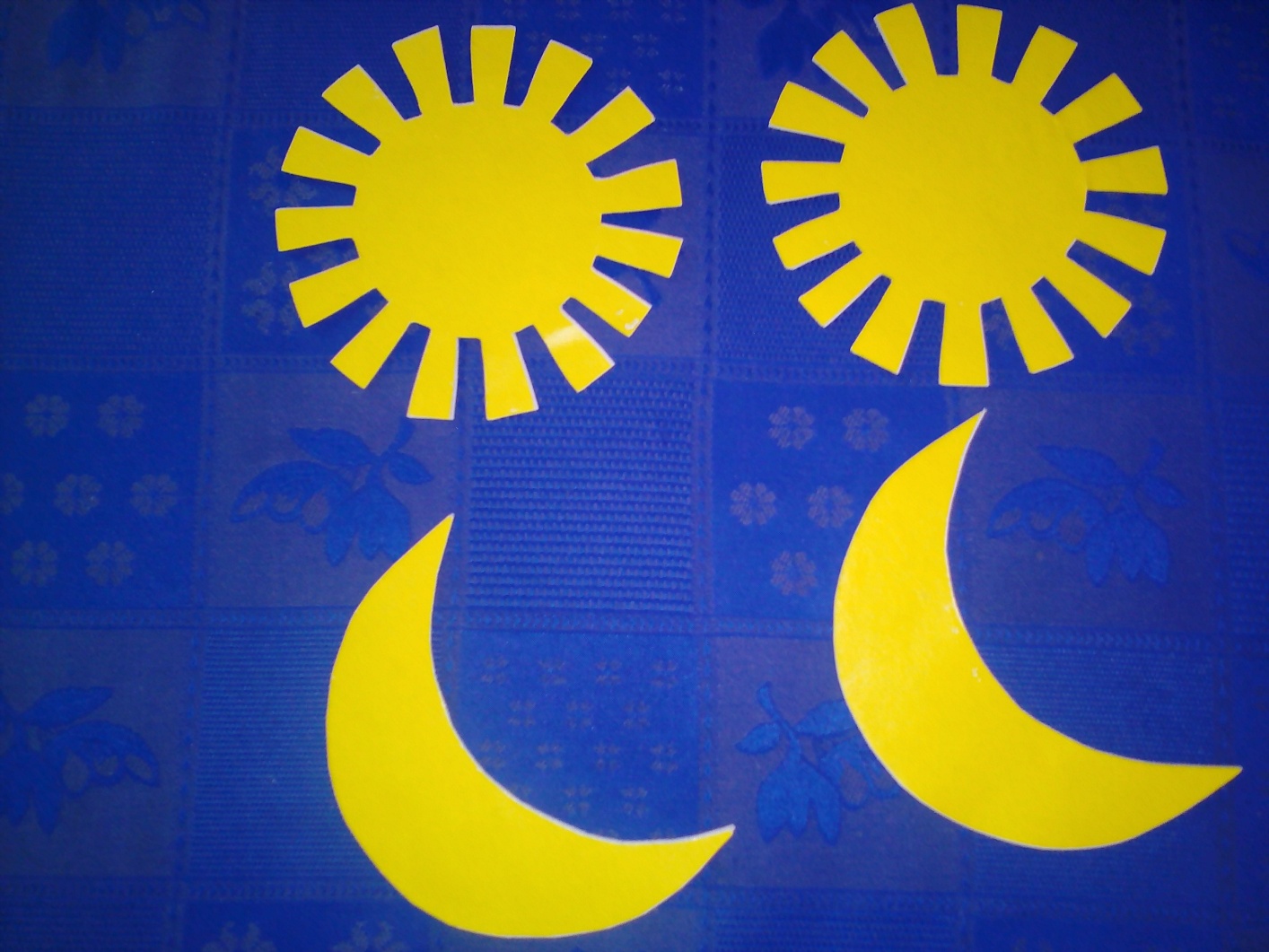 Вихователь пропонує дітям розкласти до сонечка всі предметні картинки, на яких зображені ті об’єкти, кому потрібне сонечко, а до місяця – кому не потрібне сонце.